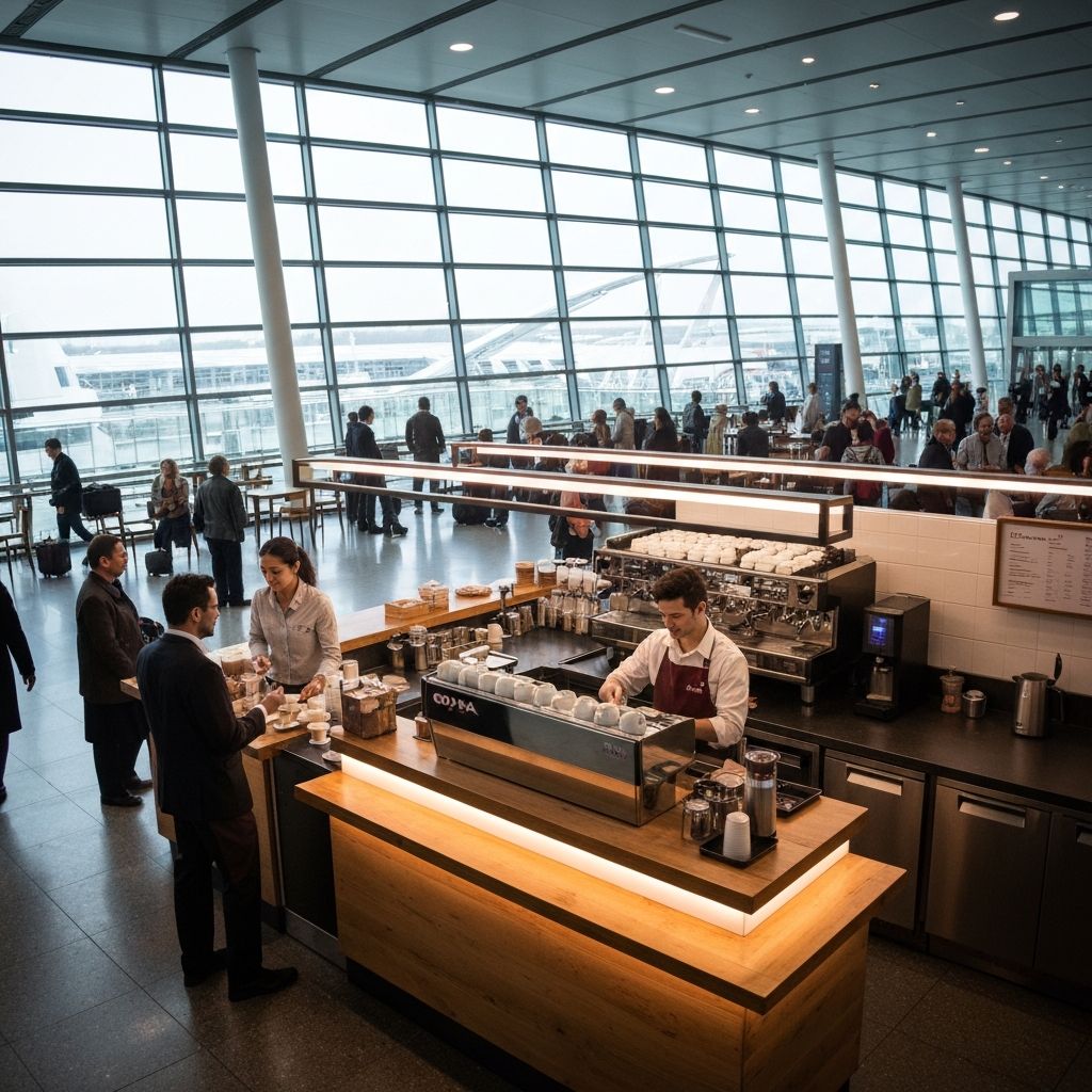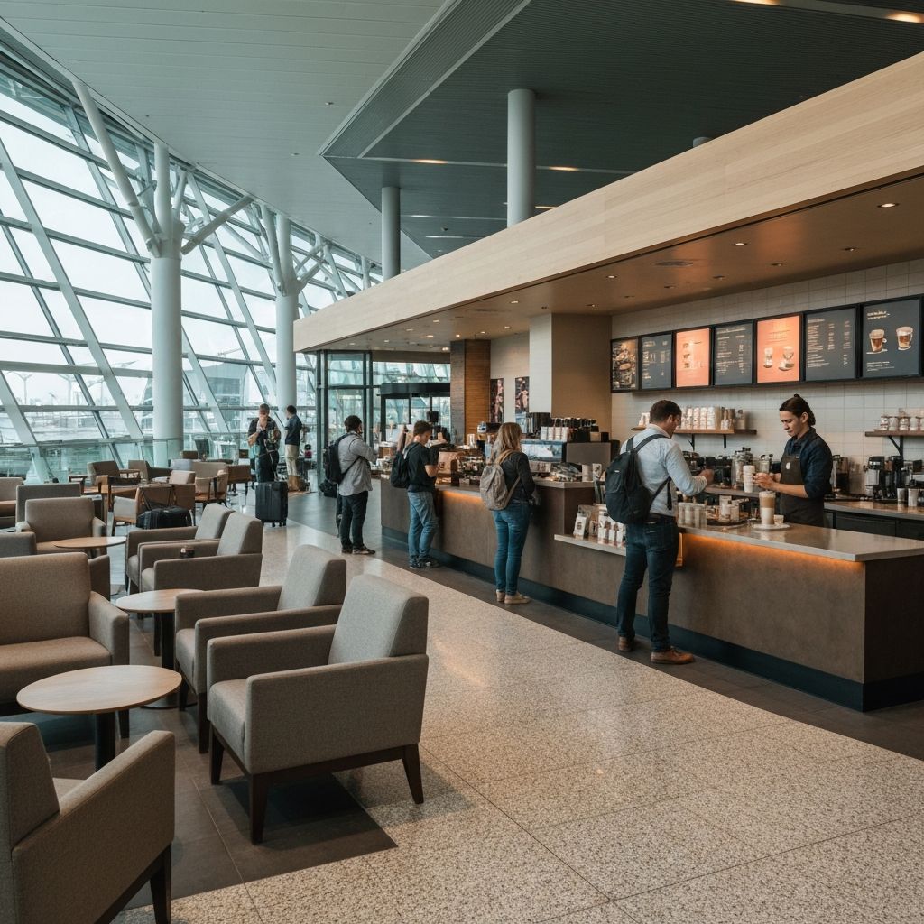 Premium coffee, pastries, and light snacks throughout the airport Hours: 24/7